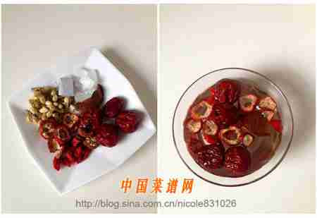 除冰糖外的全部材料用清水浸泡10分钟,洗去浮尘;
