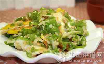 6放入子姜末加少许食盐,将荷包蛋片放入菜锅同炒。