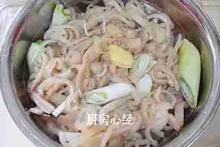 2.肉皮焯水15分钟后捞出,一定自然冷却,别泡凉水。