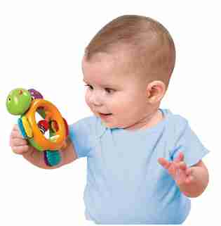 3个月大的婴儿就能一手握着“响环”玩,他们开始尝试触觉感觉视觉或味觉的作用。用手摸摸,体会手上感觉如何,用眼睛看看玩具的各种色彩,用口尝尝玩具的味道。