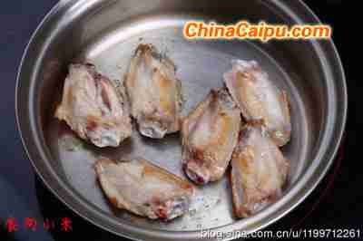 5将鸡翅两面煎一下,出现焦黄,我没焯水觉得煎过的鸡翅去油还香,