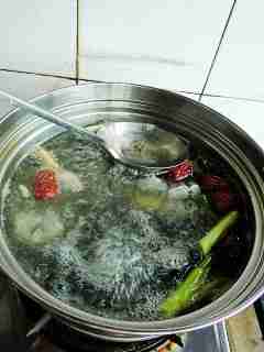 3?放入乌鸡肉。.大火煮开,撇去浮沫。