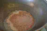 3锅里留底油,下甜面酱,放入白糖,料酒和盐,翻炒至酱汁变稠。