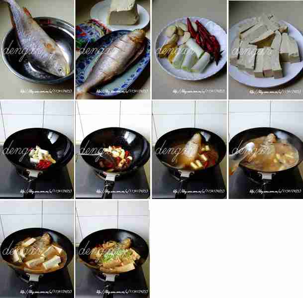 原料黄花鱼750克卤水豆腐750克豆瓣酱葱姜蒜八角干红辣椒