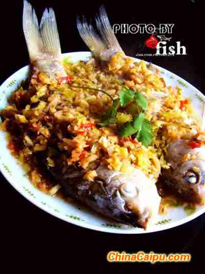鱼的蒸方式和清蒸差不多,但是多了一道放剁椒的工序,一定要后放剁椒,这样蒸出来的鱼才能鱼肉鲜美。先要抹上猪油的目的能让鱼更细滑,这个方式适合所有的鱼。如果不怕辣,剁椒用来拌饭绝对的开胃。