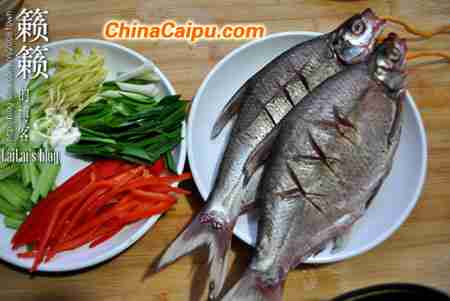 材料鳊鱼2条香芹1小把红甜椒1只大葱2根