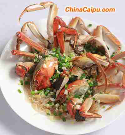 材料:螃蟹2只 粉丝50克 葱姜蒜若干