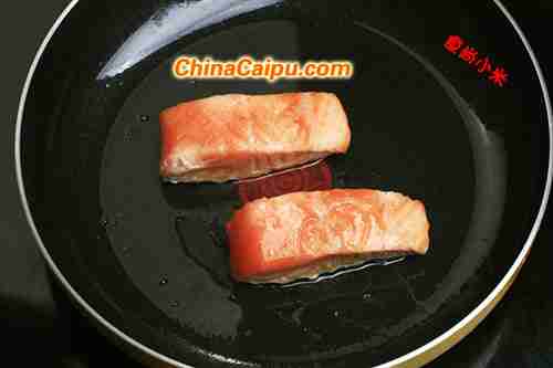 1三文鱼鱼柳去刺切中块用绍酒橄榄油腌渍5分钟