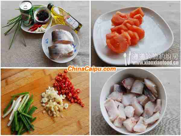 1.鱼切小块,小红椒切小圈,姜蒜切末,香葱切小段,番茄切块待用。