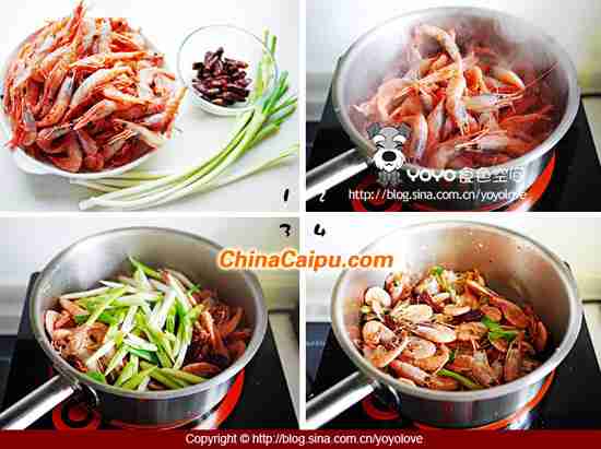 2烧热锅子,加入一勺油,放入北极虾翻炒2分钟。
