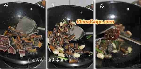 5. 倒入姜片葱段和蒜头,一起翻炒几下。