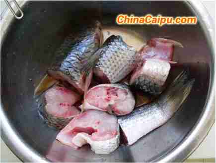 1.梭鱼清理干净,洗净后切段,在里外均匀的抹上一层料酒一层薄盐,腌15分钟左右。