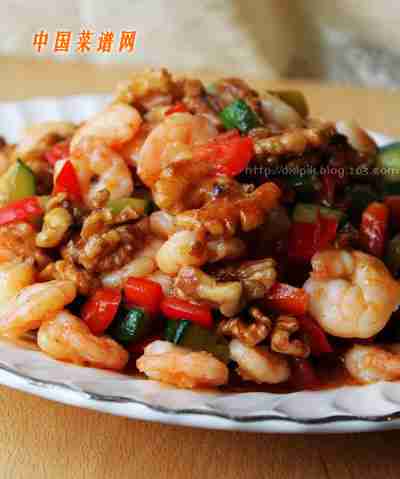 新鲜虾仁核桃仁黄瓜红甜椒姜淀粉植物油盐水淀粉