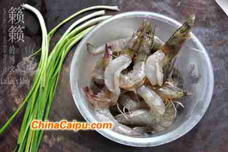 2.将虾取出剥壳,剥除虾身上的壳保留虾头及尾冀,剥壳后的虾从虾背上开一刀,抽出泥肠备用;