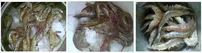 1鲜虾剪去虾枪虾须,挑去沙包和虾线,冲洗干净备用。买回来的活虾如果不马上吃,一定要垫冰保鲜。