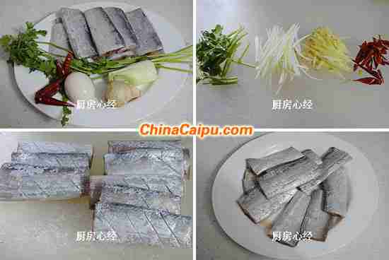 2.带鱼二面每隔1厘米,打上花刀,加入盐;料酒;胡椒粉腌制20分钟