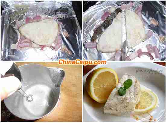 材料鳕鱼1块柠檬1个洋葱黑胡椒粉葱盐白葡萄酒