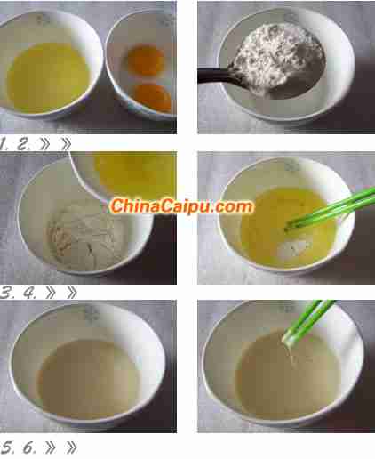5.使面粉吸收蛋清液变得稀释,直到没有面疙瘩的蛋清面粉糊。