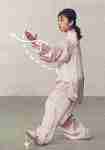 学练要点身体要稳定,不可前俯后仰。蹬脚分掌时,两膝两肘微屈,力点在脚跟。分手和蹬脚要协调一致,右臂与右腿,左臂与左腿上下相对。