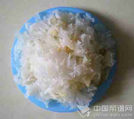 3黄瓜和冷却的银耳拌到一起,加上蒜泥,醋,香油,搅拌均匀就可以了。