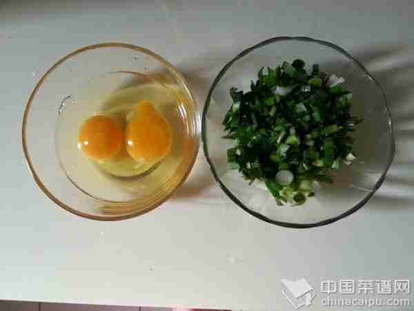 2.鸡蛋打开,青蒜切碎
