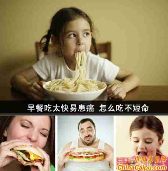 早餐吃太快,患癌风险高。调查中有60.42%的人在10分钟内吃完早餐,5分钟内吃完的占9.38%。对此,马冠生指出,狼吞虎咽最直接的影响是消化不良。美国南卡罗来纳医科大学研究指出,咀嚼不细,胃肠负担加重,患上胃食管反流的几率大大增加。日本神经内科医学博士米山公启说,吃饭太快无法激发脑神经活动,人会变笨。日本大阪大学还研究发现,吃饭速度太快会导致肥胖几率翻倍。而且,多数人不顾食物太烫就匆忙吃完,长期高温饮食可能会诱发癌症。越来越多的研究显示,饮食过热和食道癌等多种消化道疾病息息相关。》》五种最致癌的食物组合你造吗?