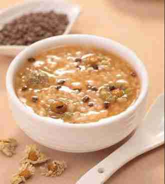【制法】先将决明子炒至微黄,取出待冷却后熬汁。然后,用其汁和大米同煮,熟后加入冰糖,即可食用。
