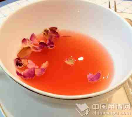 11玫瑰露玫瑰花约40克。每年4~6月间,在玫瑰花蕾将开放时,选取朵大瓣厚色紫鲜艳香气浓者,分批采摘后,用小火迅速烘干;烘时将花摊成薄层,花冠向下,待其干燥后,再翻转烘干其余部分;将干玫瑰花约40克放入烧瓶内,加入适量清水,将瓶塞盖上,接上冷凝管;然后将烧瓶置于酒精炉上加热,烧开后收取蒸馏液既得玫瑰露。每日2~3次,每次80毫升左右,温热饮用,连服约6天。养胃宽胸,行气解郁。适用于慢性胃炎和神经性胃痛,胸闷郁结,恶心呕吐等。