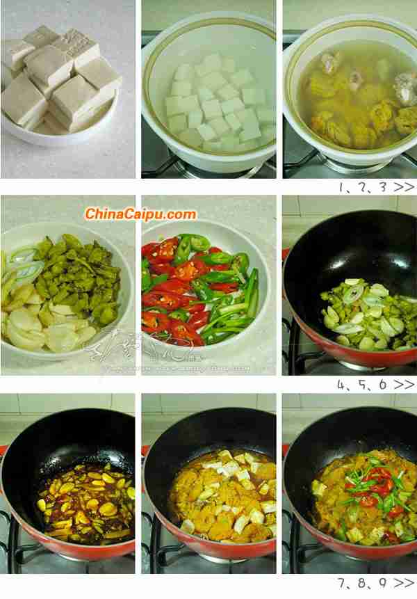 ** 豆腐加盐过水炒制时不易碎。鱼杂比较腥,先过道水以去除血腥气。