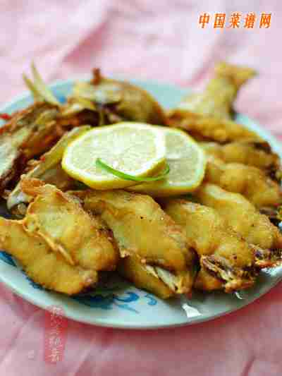 4捞起,再次放入烧热的油锅中复炸几分钟即可装盘,吃的时候淋上柠檬汁就好了