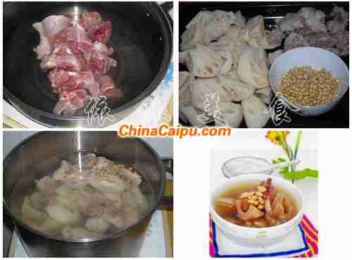 莲藕1000克,肉骨500克,黄豆一杯,盐适量