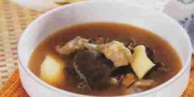 取灵芝15克,猪蹄1只,料酒精盐味精葱段姜片猪油适量。将猪蹄去毛后洗净,放入沸水锅中焯一段时间,捞出再洗净,灵芝洗净切片。锅中放入猪油,烧热加葱姜煸香,放入猪蹄水料酒味精精盐灵芝武火烧沸,改用文火炖至猪蹄熟烂,出锅即成。