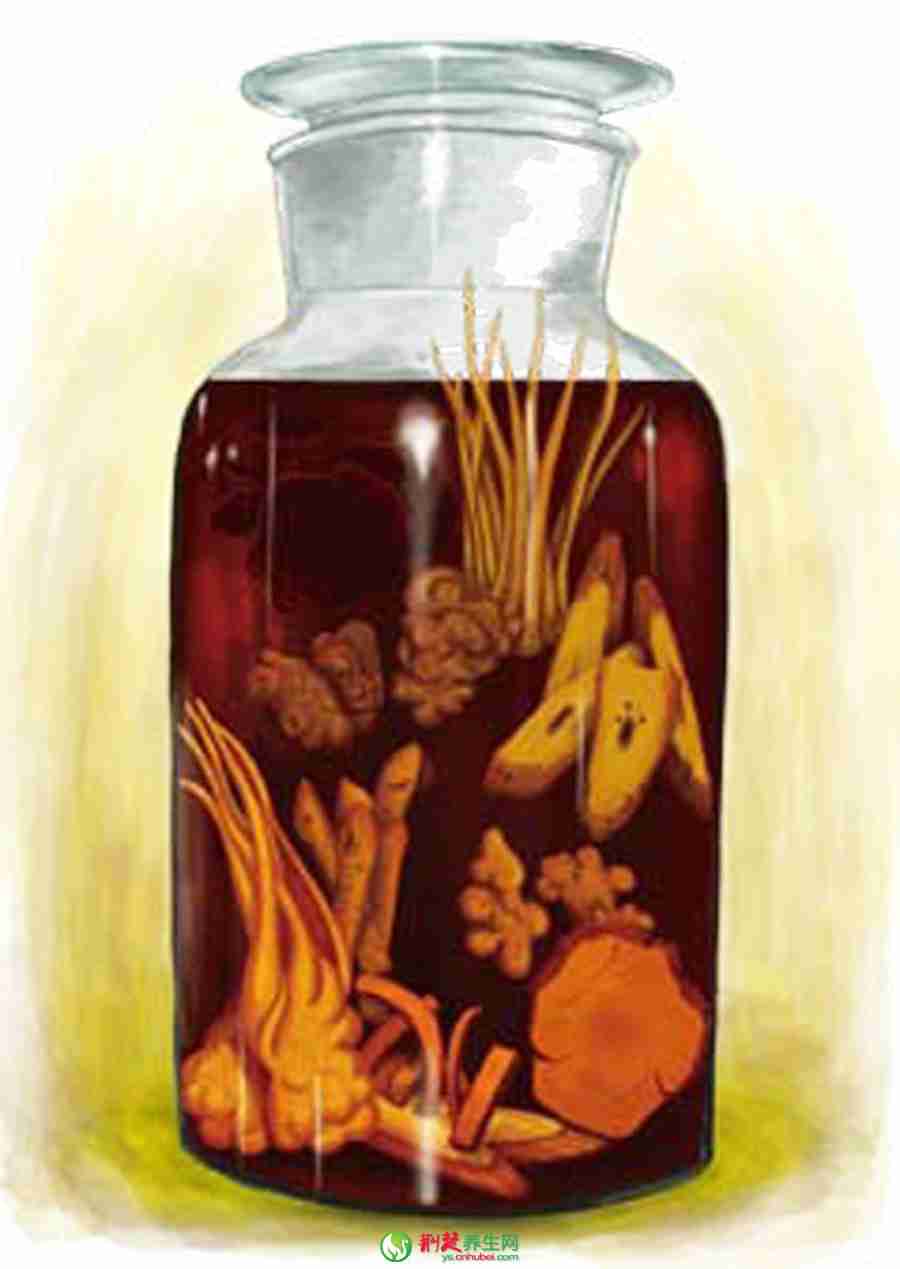 制法将三七洗净,晒干,切片或敲碎,可选用不同等级的三七头如10头,20头,30头等。枸杞子除去杂质,与白熟地同放入洁净的纱布袋中,封好袋口,把药袋放入酒中密封浸泡,每日搅拌1次。浸泡15天后,用洁净纱布过滤,取药酒备用。将冰糖放入锅中,加少量水加热溶化煮沸,煮至见微黄时,趁热过滤去渣,待凉后加入药酒中,搅匀。静置一段时间后,取上清酒液即可饮用。